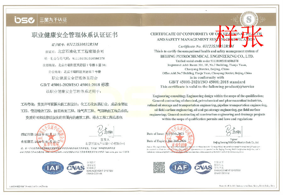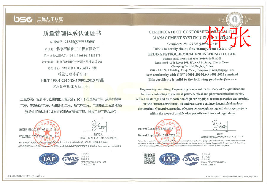 電力行業(yè)(新能源發(fā)電)專業(yè)乙級;建筑行業(yè)(建筑工程)乙級;商務(wù)糧行業(yè)(成品油儲運(yùn)工程)專業(yè)乙級;石油天然氣(海洋石油)行業(yè)(管道輸送、油田地面、油氣庫)專業(yè)乙級;市政行業(yè)(排水工程)專業(yè)乙級。
